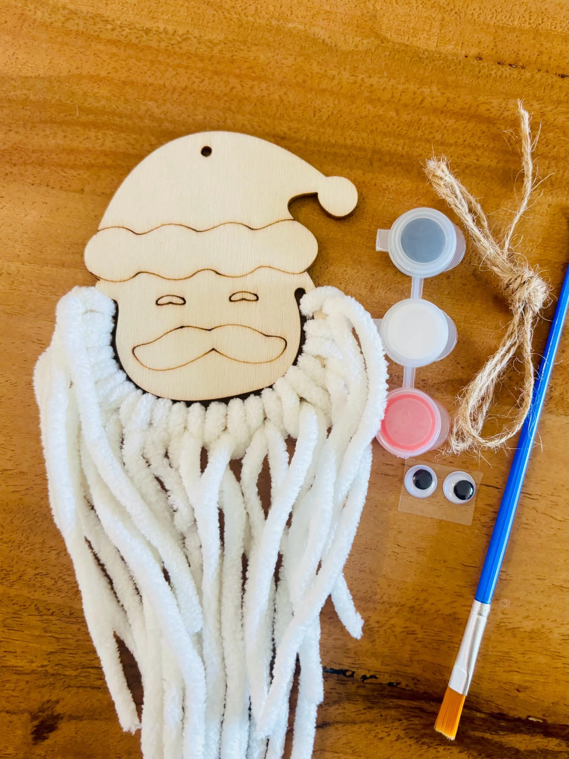 Once your Santa is painted and the string is looped through, you can use scissors to give it a little trim if needed.