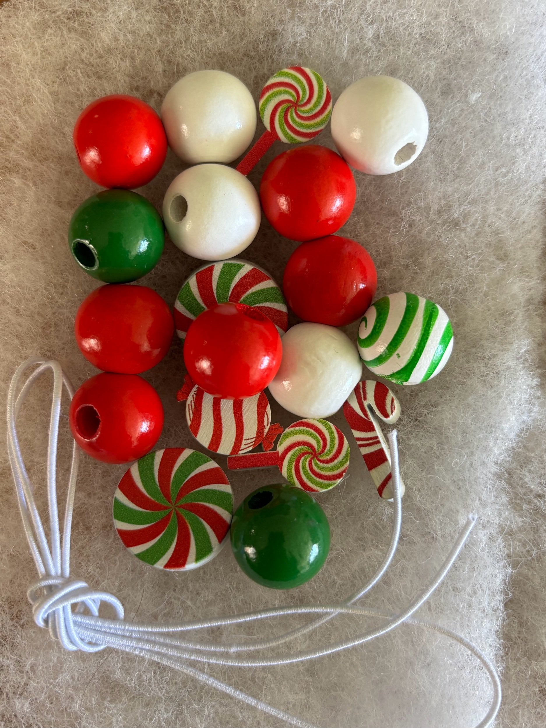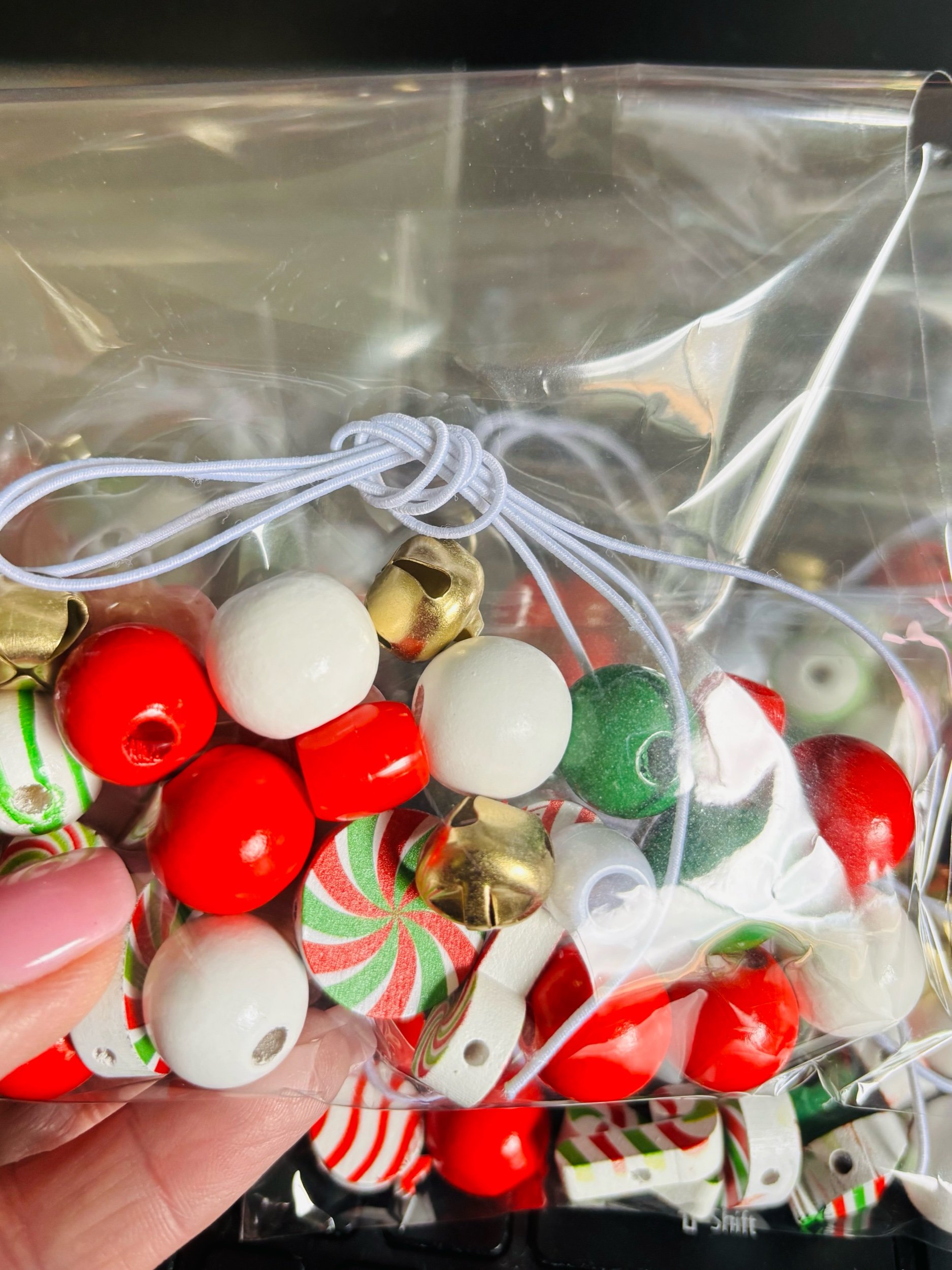 Each kit includes approximately 20 festive beads, Christmas bells and a length of white elastic for threading.